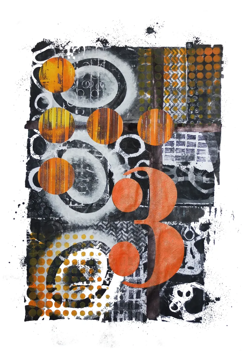 "Orange Frequency" is a visual exploration of rhythm, repetition, and the hidden signals found within urban environments. This mixed-media piece serves as a "broadcast" of colour and texture, where bold orange circles act as resonant pulses against an industrial backdrop of charcoal blacks and stark whites.