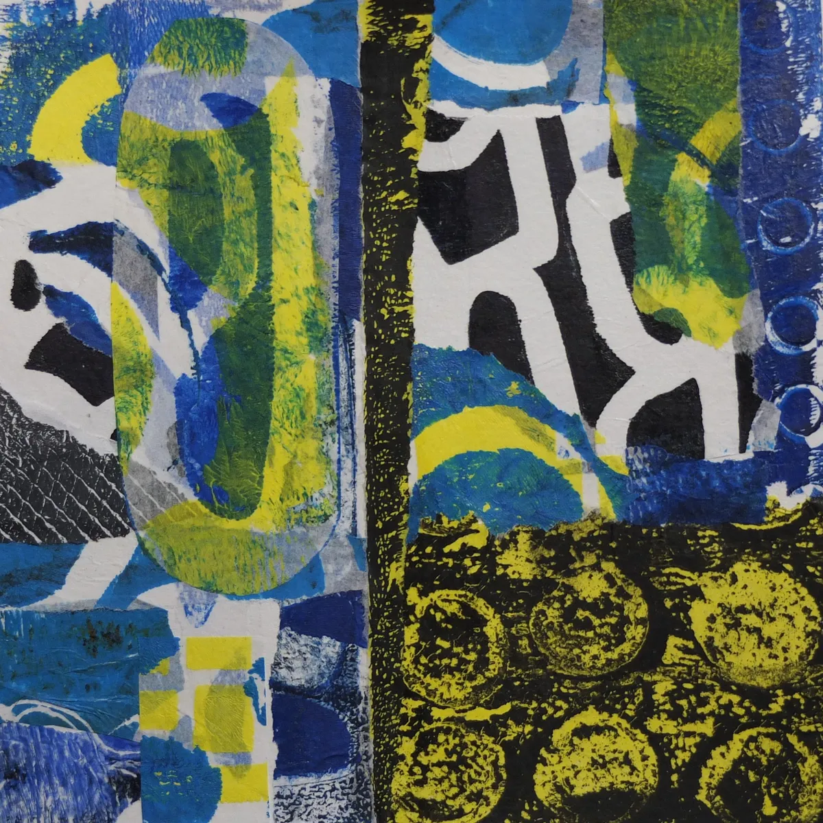 A visual dialogue between order and chaos. The high-contrast palette of charcoal black and vibrant ochre highlights the tension between the structured form of the number '6' and the unpredictable, organic nature of the ink transfers. This piece is a celebration of the 'happy accident' found within the mechanical process of printing.